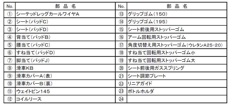 交換部品一覧
